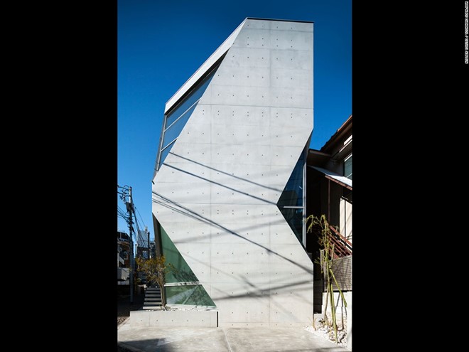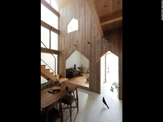 Thay vì những góc vuông truyền thống, Yamashita thường cắt cạnh của ngôi nhà thành hình tam giác, tạo diện tích bề mặt rộng hơn. Các công trình luôn có một giếng trời khiến căn nhà luôn tràn ngập ánh sáng tự nhiên. Ảnh: Atelier Tekuto.