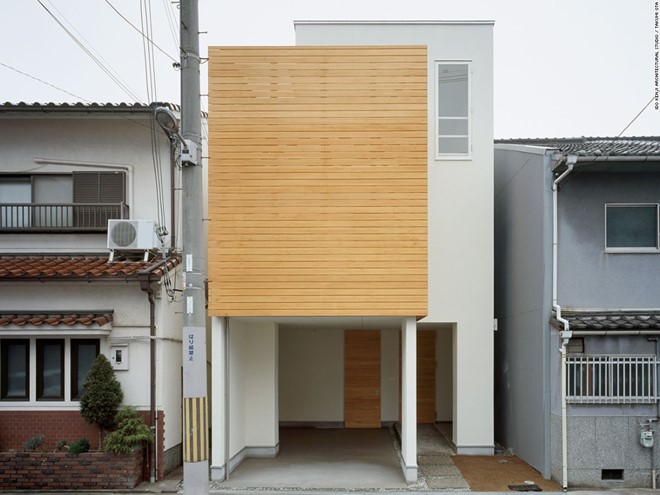 House F tọa lạc trên một lô đất hẹp tại thành phố Osaka. Ngôi nhà 3 tầng lấy điểm nhấn là những thanh gỗ thông, cửa số lớn và một khu vườn ở phía nam. Ảnh: Takumi Ota.